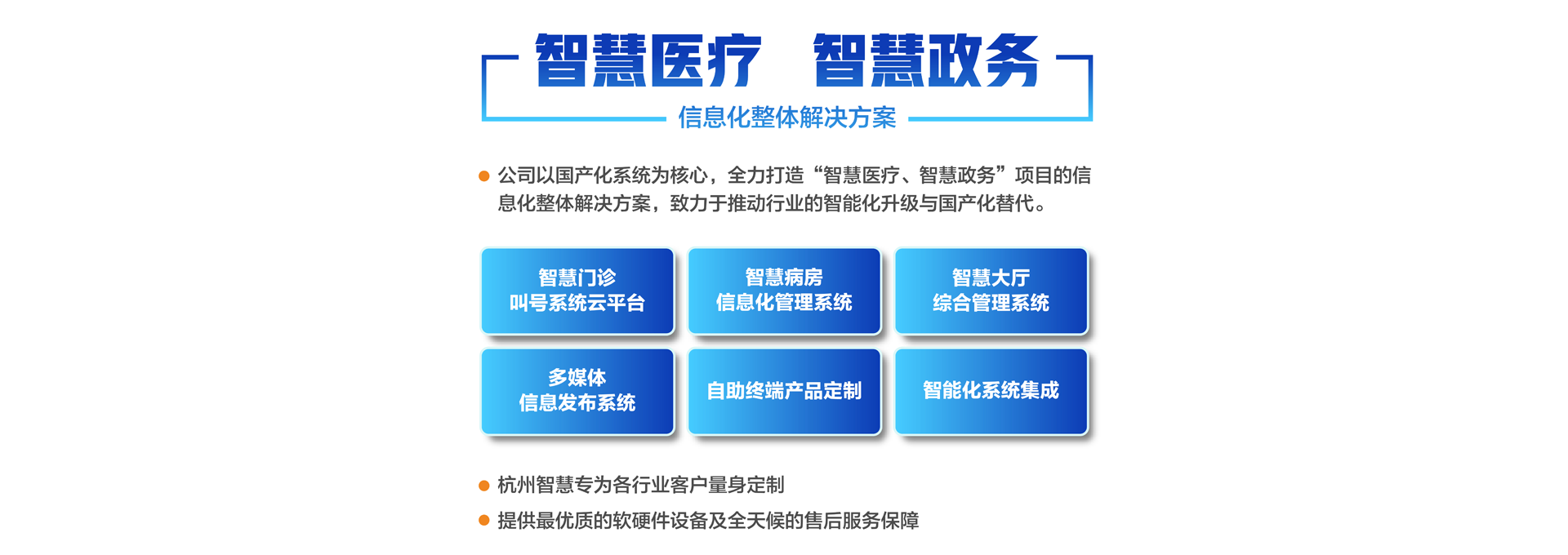杭州智慧科技有限公司初創(chuàng)于2003年,總部位于重要的電子商務中心中國杭州公司主營業(yè)務有:智慧分診叫號系統(tǒng)、智慧病房醫(yī)護對講系統(tǒng)、智慧大廳綜合管理系統(tǒng)、智慧政務管理系統(tǒng)、智慧多媒體信息發(fā)布系統(tǒng)、導診系統(tǒng)及各自助終端產(chǎn)品定制。專為各行業(yè)客戶量身定制。公司已有20余年行業(yè)經(jīng)驗沉淀積累,擁有優(yōu)秀的產(chǎn)品外觀設計師和各類中高級專業(yè)技術工程師,確保所研發(fā)的產(chǎn)品具有行業(yè)領先的外觀及可靠的技術性能。并擁有權威部門頒發(fā)的各類知識產(chǎn)權及專利證書,30多項資質證書、800多個合作伙伴、2000多個項目成功案例經(jīng)驗。 智慧產(chǎn)品已遍及全國各醫(yī)療、政務、金融、通訊、公安、工商、稅務等行業(yè),形成以“立足杭州、輻射長三角、拓展全國”的戰(zhàn)略發(fā)展格局,產(chǎn)品經(jīng)過歷年不斷創(chuàng)新,形成專業(yè)化、平臺化,致力于成為智慧產(chǎn)品的領軍企業(yè)。 公司建立了完善的技術培訓及售后服務中心,并設24小時熱線咨詢電話解答用戶反饋的問題。同時應客戶要求定期派技術人員到 全國各地進行技術指導輔助用戶正確使用智慧產(chǎn)品并能獨立安裝、調試、日常維護等工作。提供最優(yōu)質的設備及全天候的售后服務保障,智慧永恒不變的服務宗旨——致力于客戶的滿意與成功!...